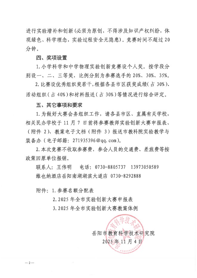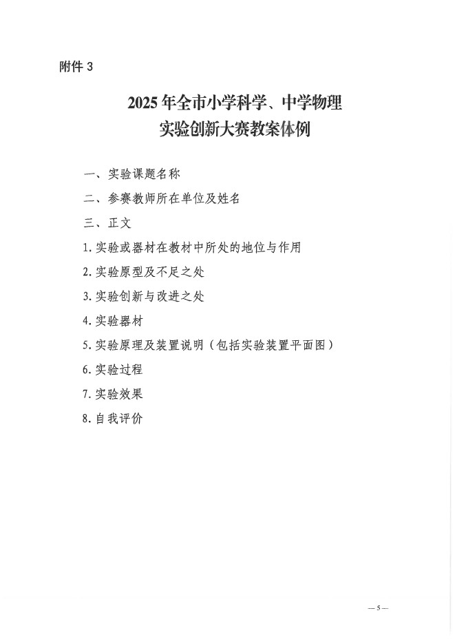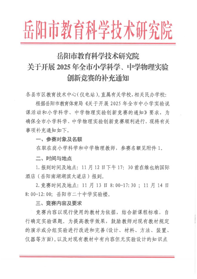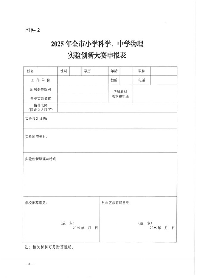关于开展2025年全市小学科学、中学物理实验创新竞赛的补充通知