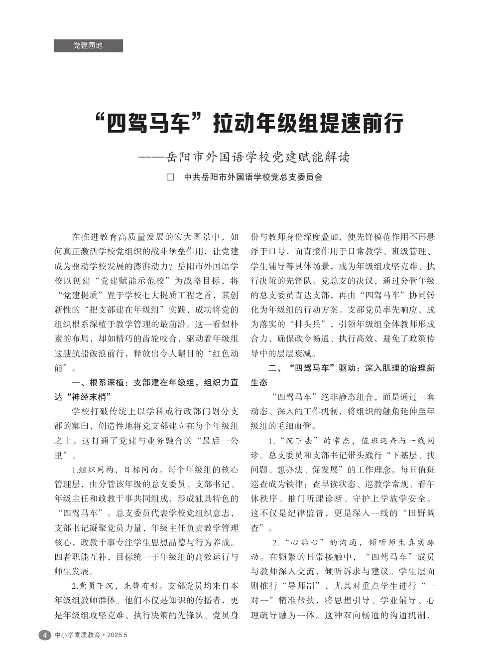 【2025年第5期】“四驾马车”拉动年级组提速前行——岳阳市外国语学校党建赋能解读