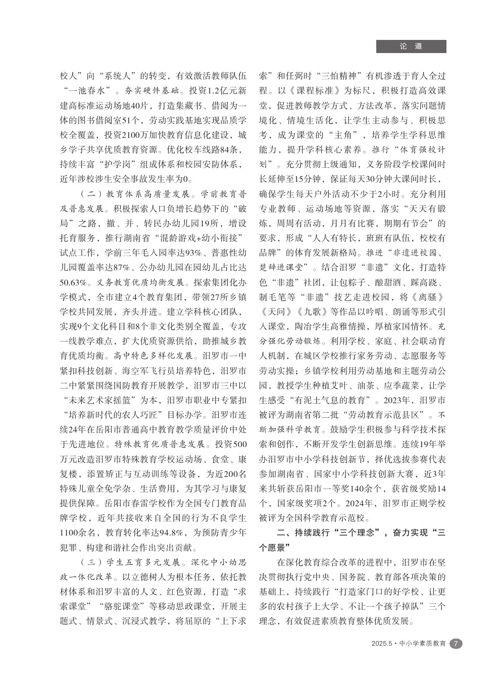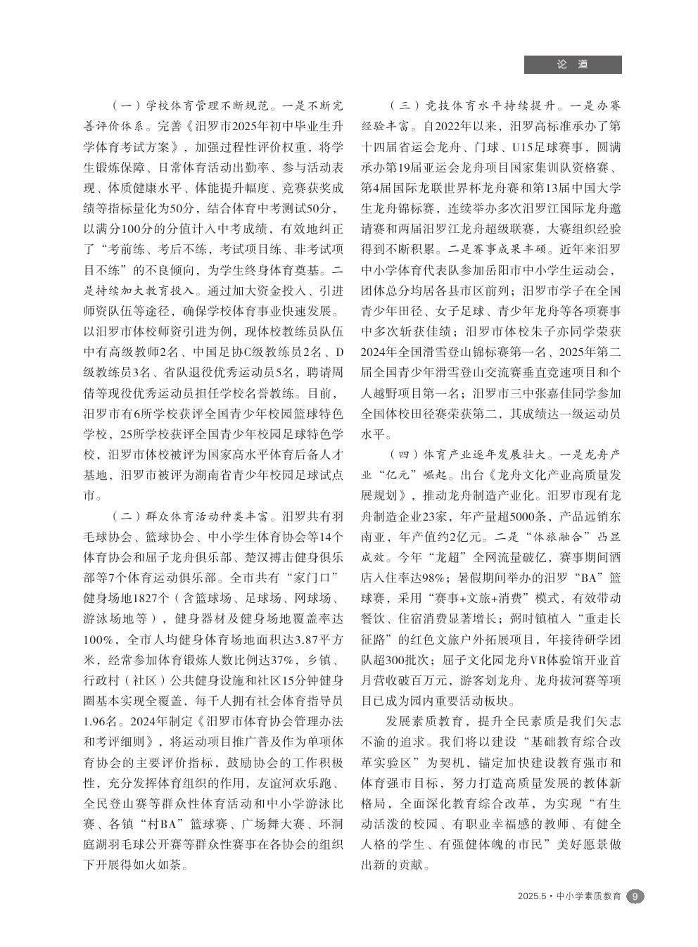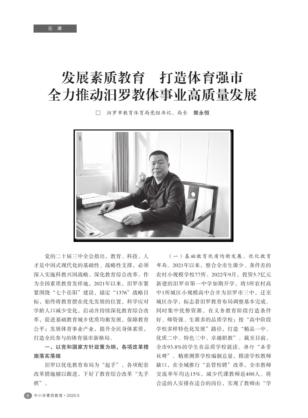 【2025年第5期】发展素质教育 打造体育强市 全力推动汨罗教体事业高质量发展