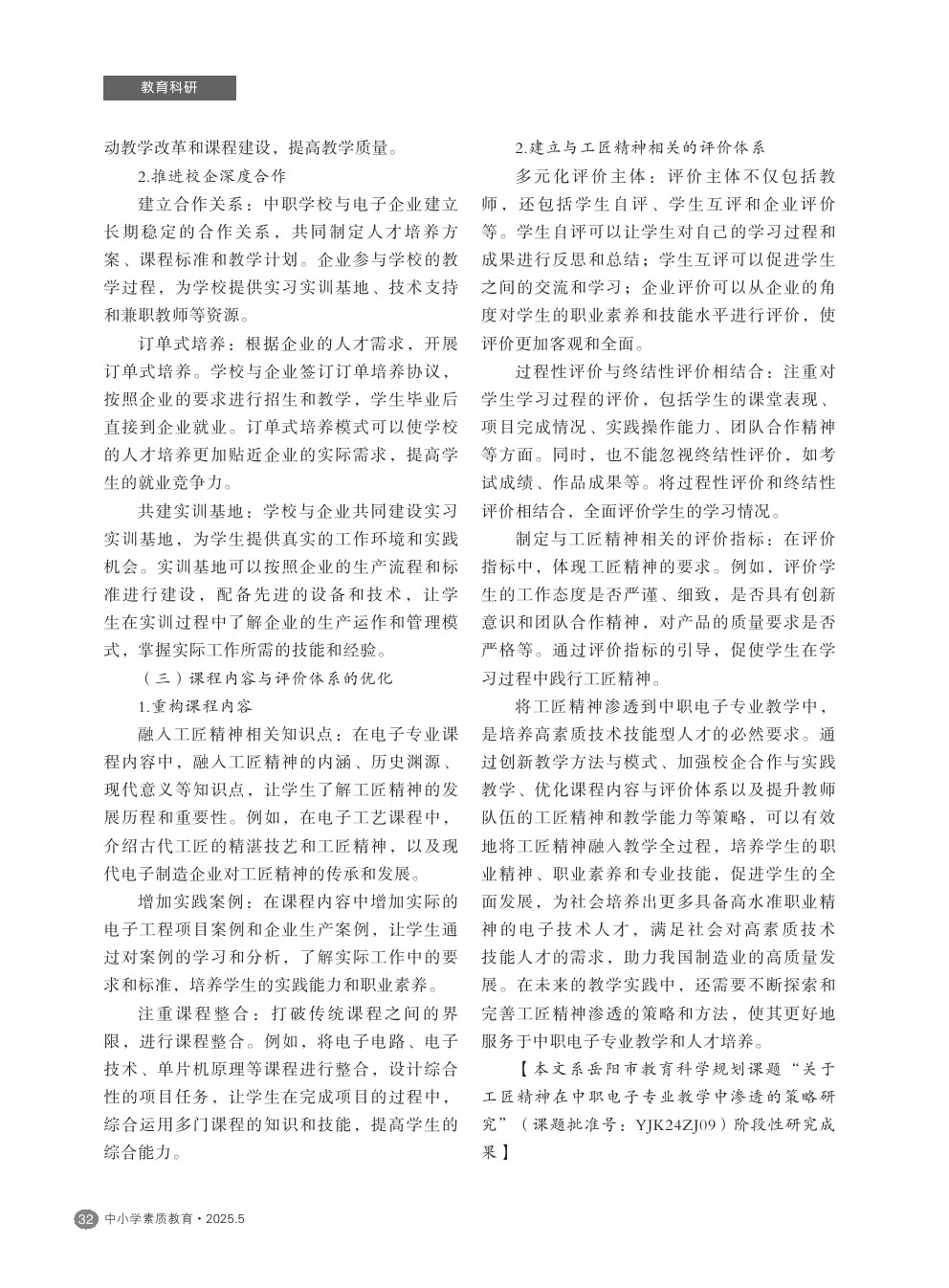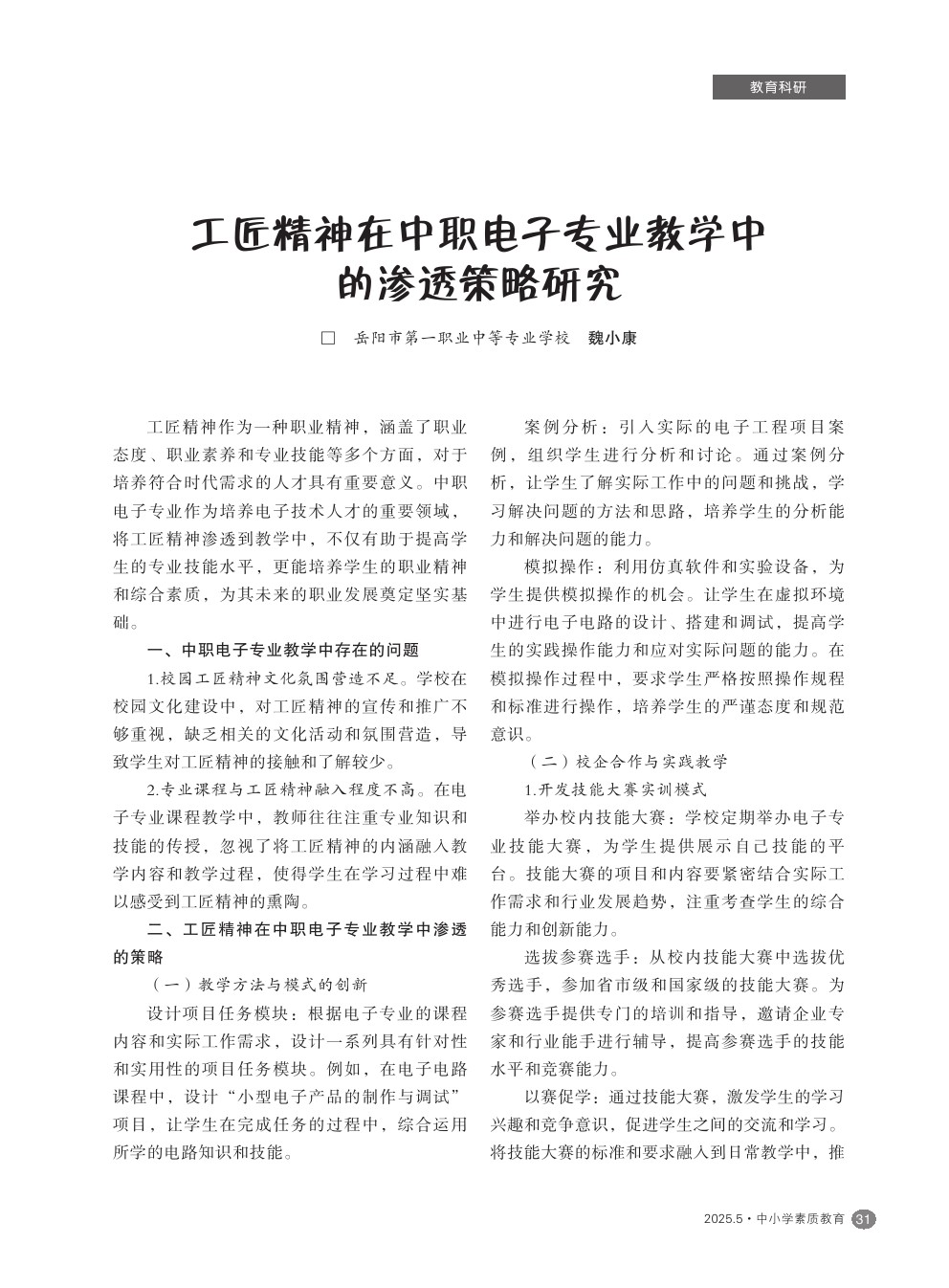 【2025年第5期】工匠精神在中职电子专业教学中的渗透策略研究