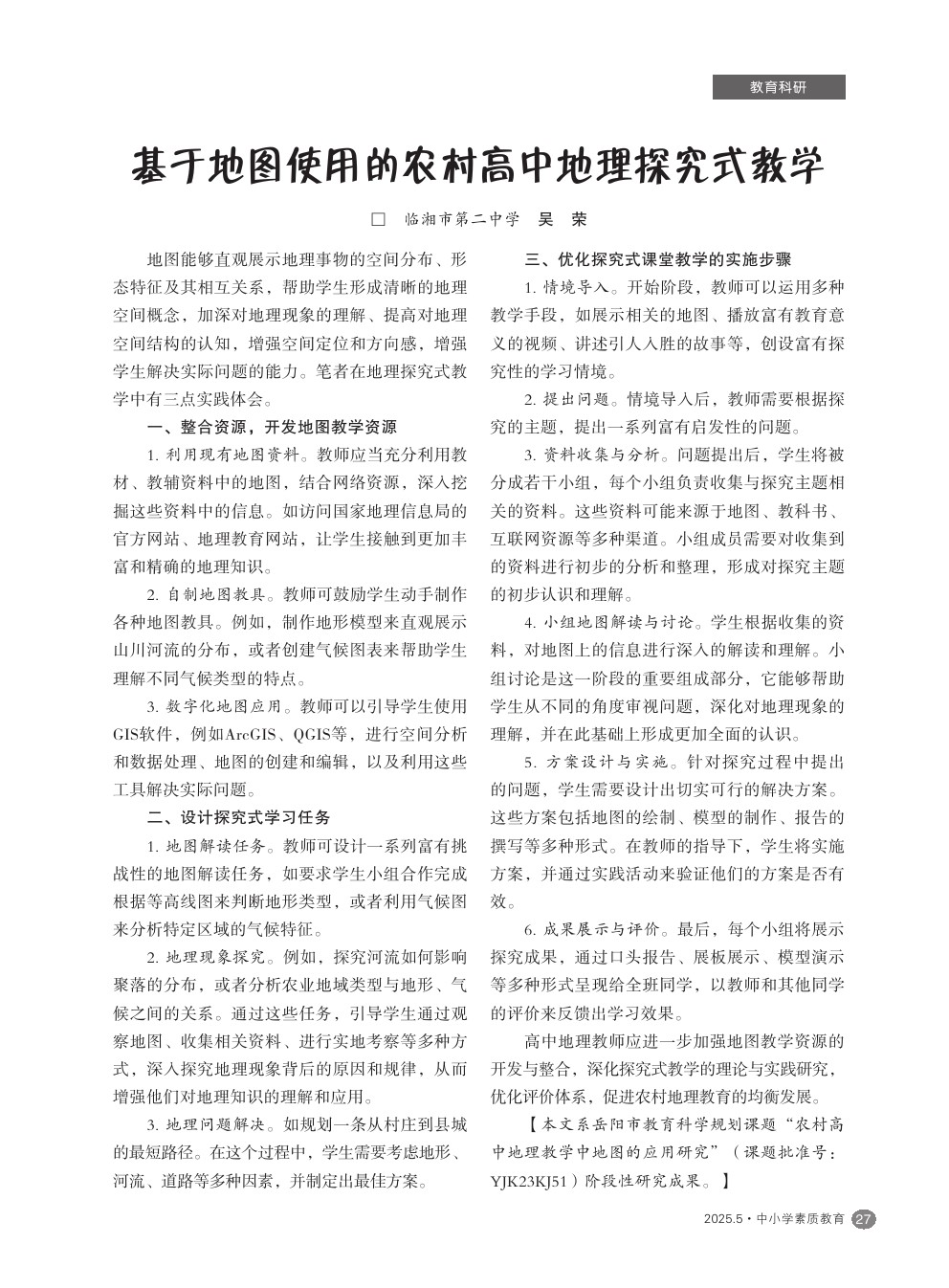 【2025年第5期】基于地图使用的农村高中地理探究式教学
