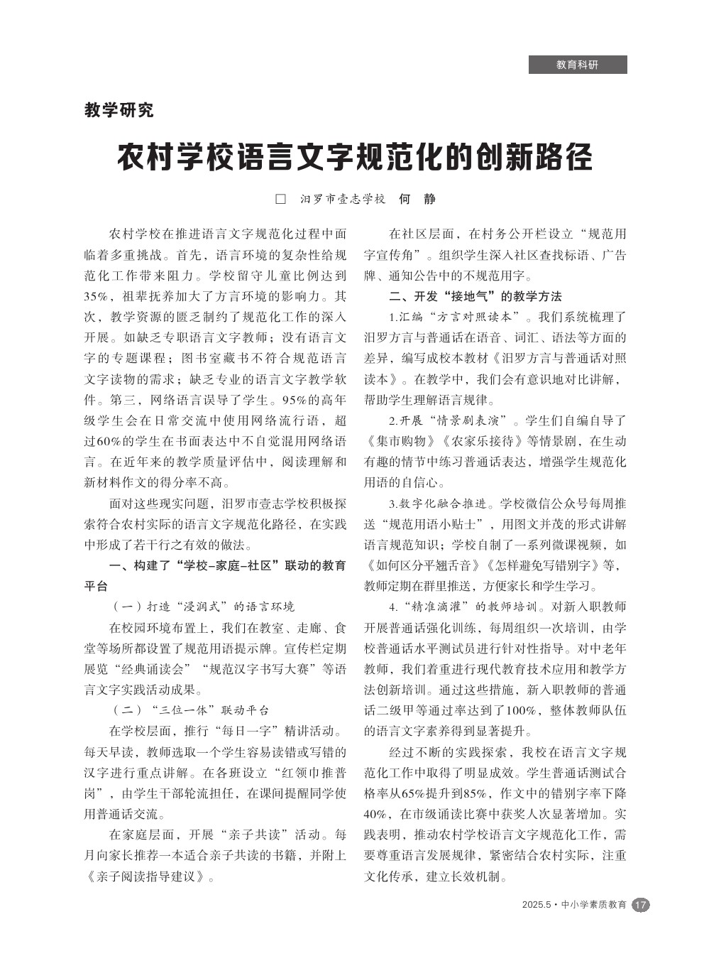 【2025年第5期】农村学校语言文字规范化的创新路径