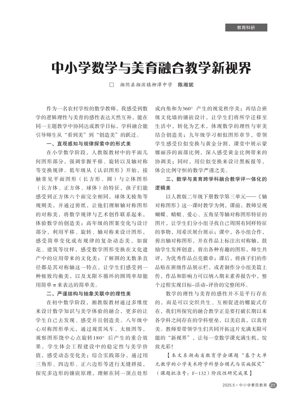 【2025年第5期】中小学数学与美育融合教学新视界