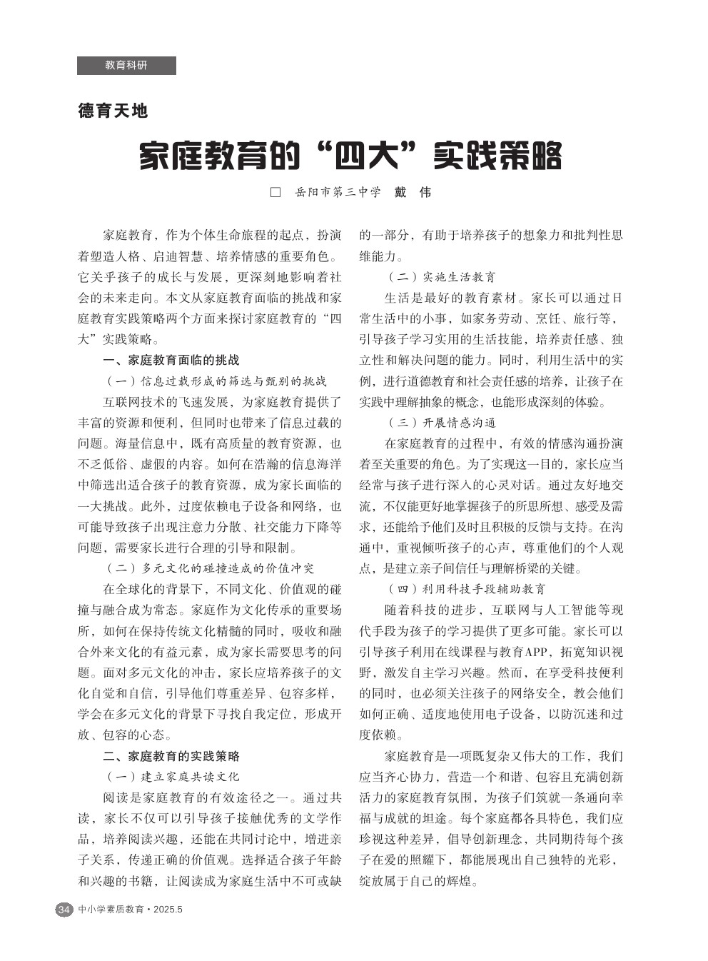 【2025年第5期】家庭教育的“四大”实践策略