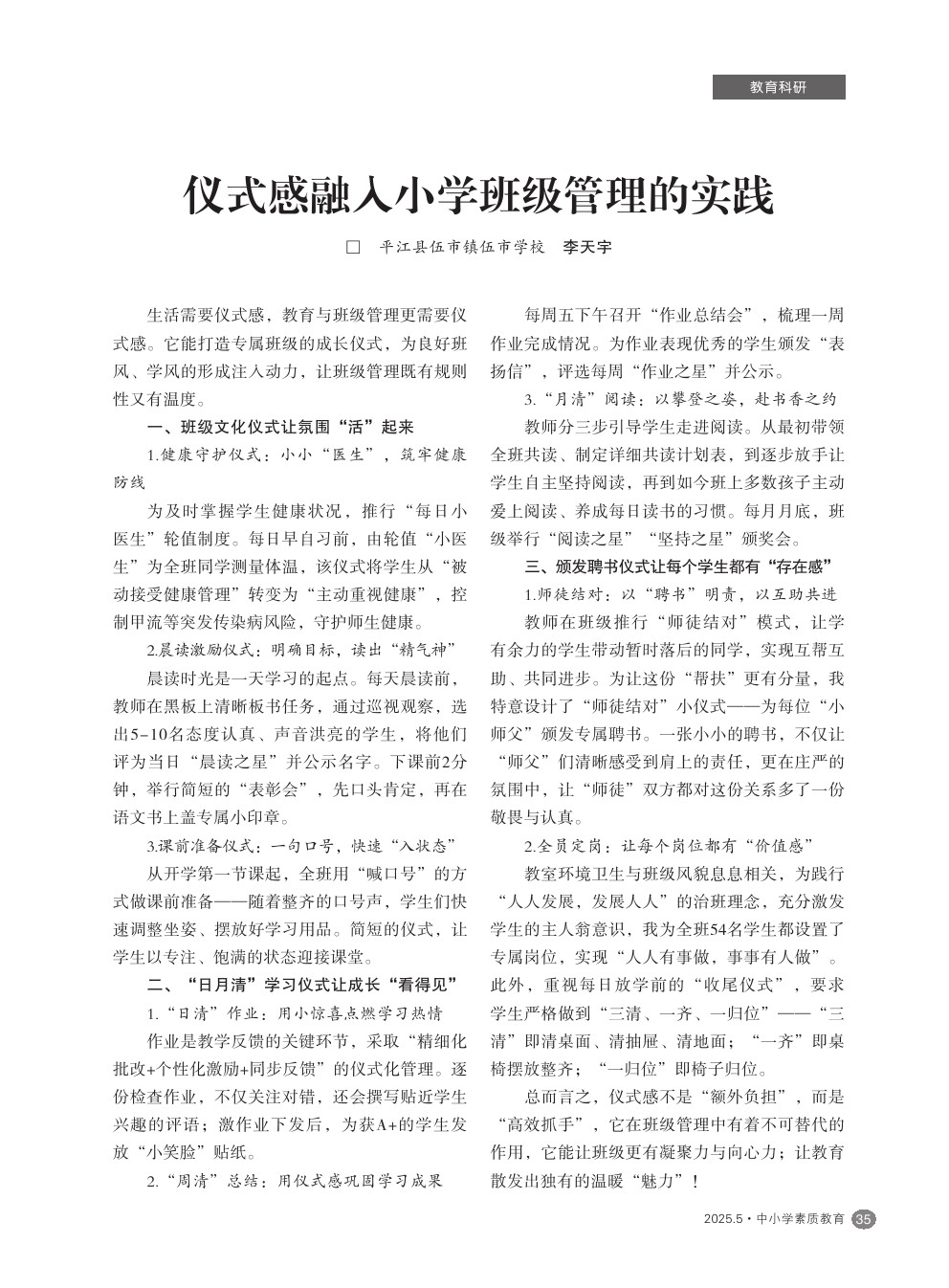 【2025年第5期】仪式感融入小学班级管理的实践