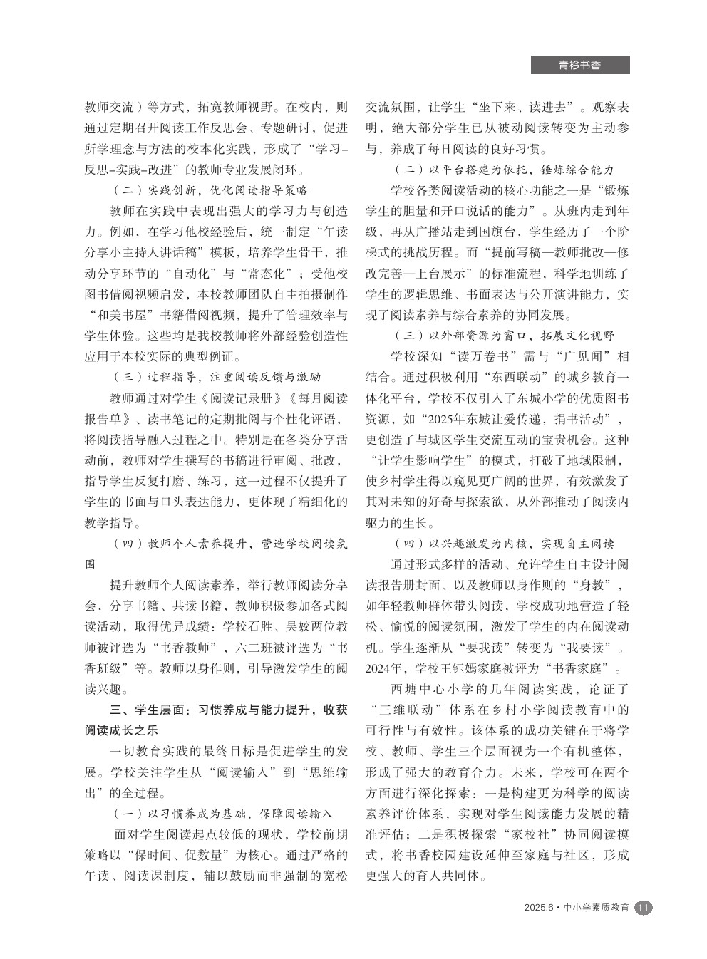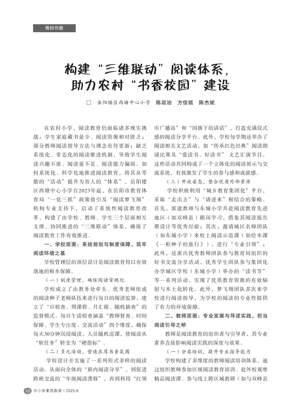 【2025年第6期】构建“三维联动”阅读体系,助力农村“书香校园”建设
