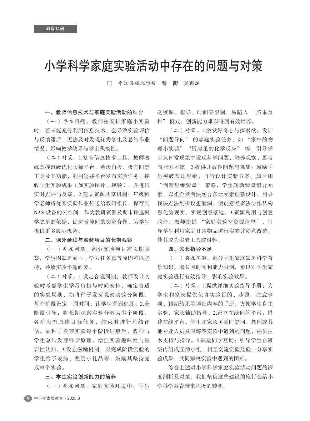 【2025年第6期】小学科学家庭实验活动中存在的问题与对策