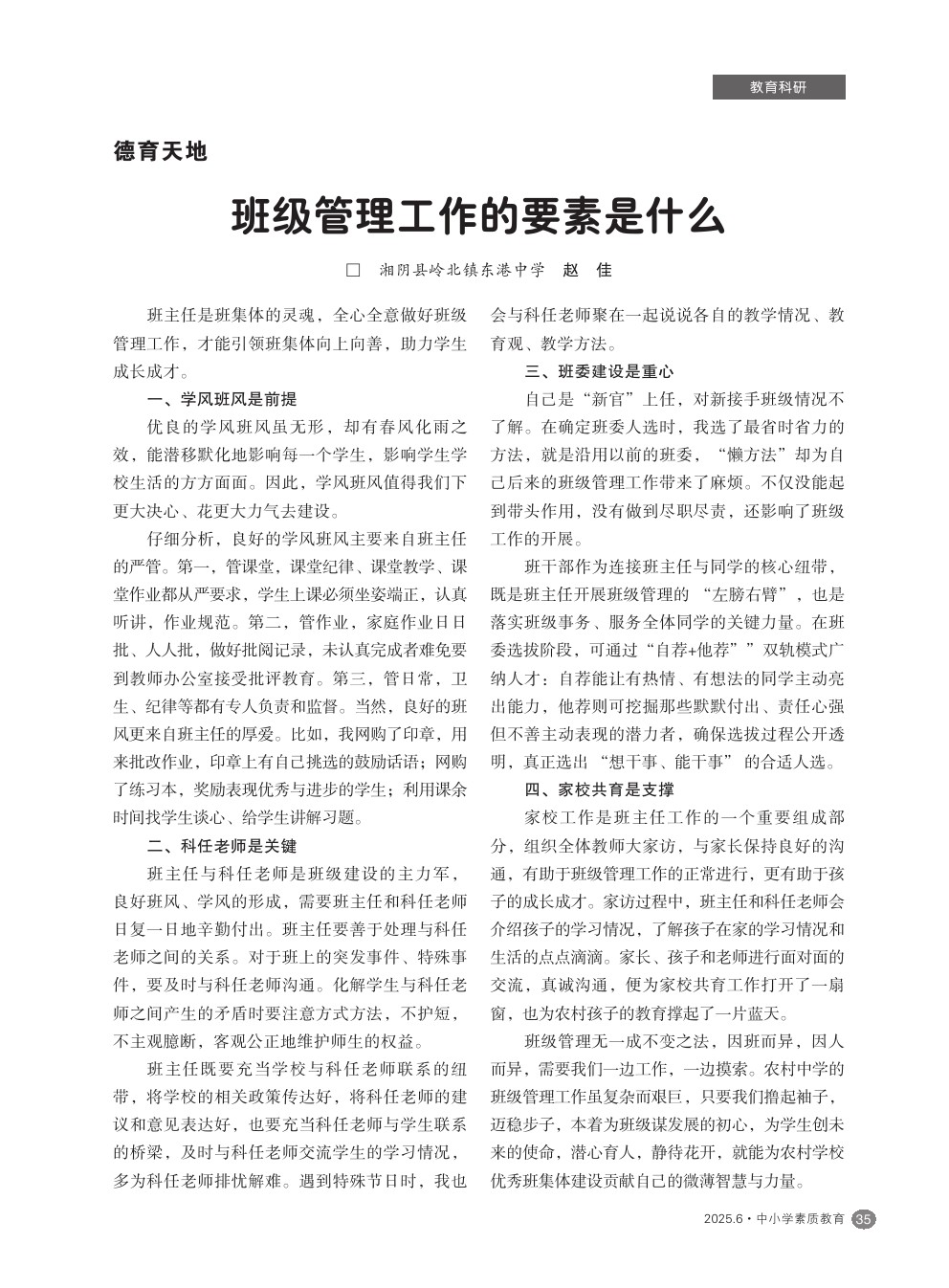 【2025年第6期】班级管理工作的要素是什么