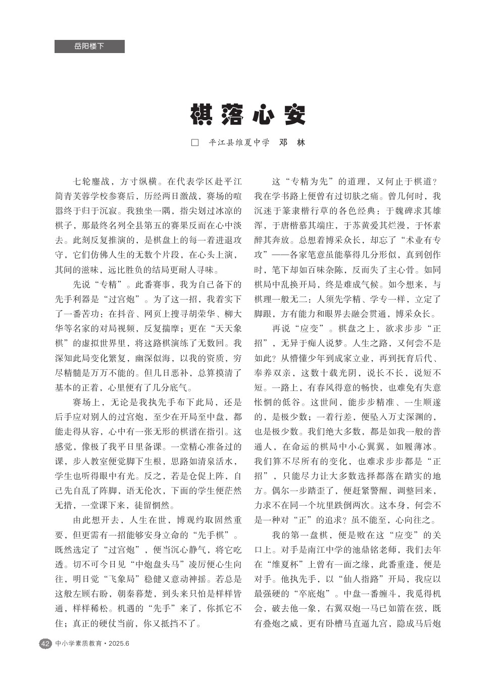 【2025年第6期】棋落心安