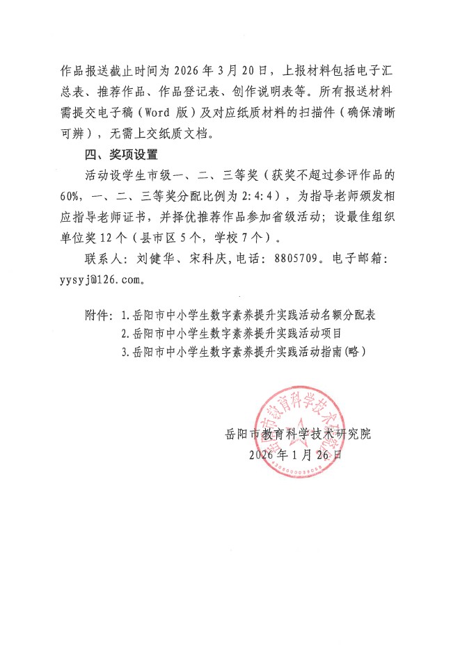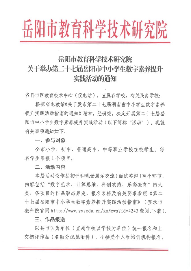 岳阳市教育科学技术研究院关于举办第二十七届岳阳市中小学生数字素养提升实践活动的通知.pdf