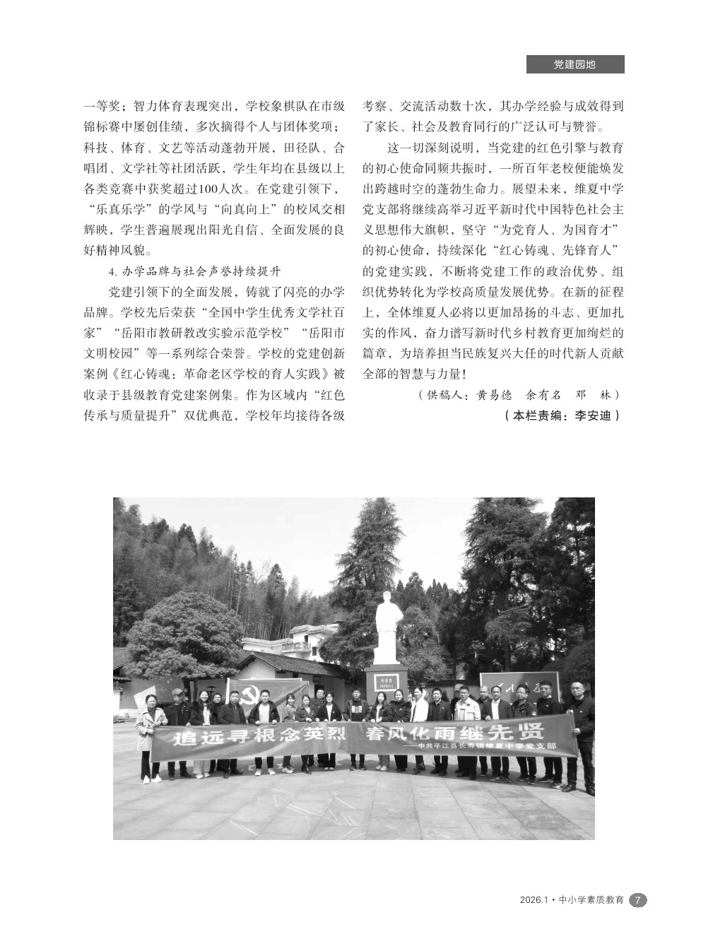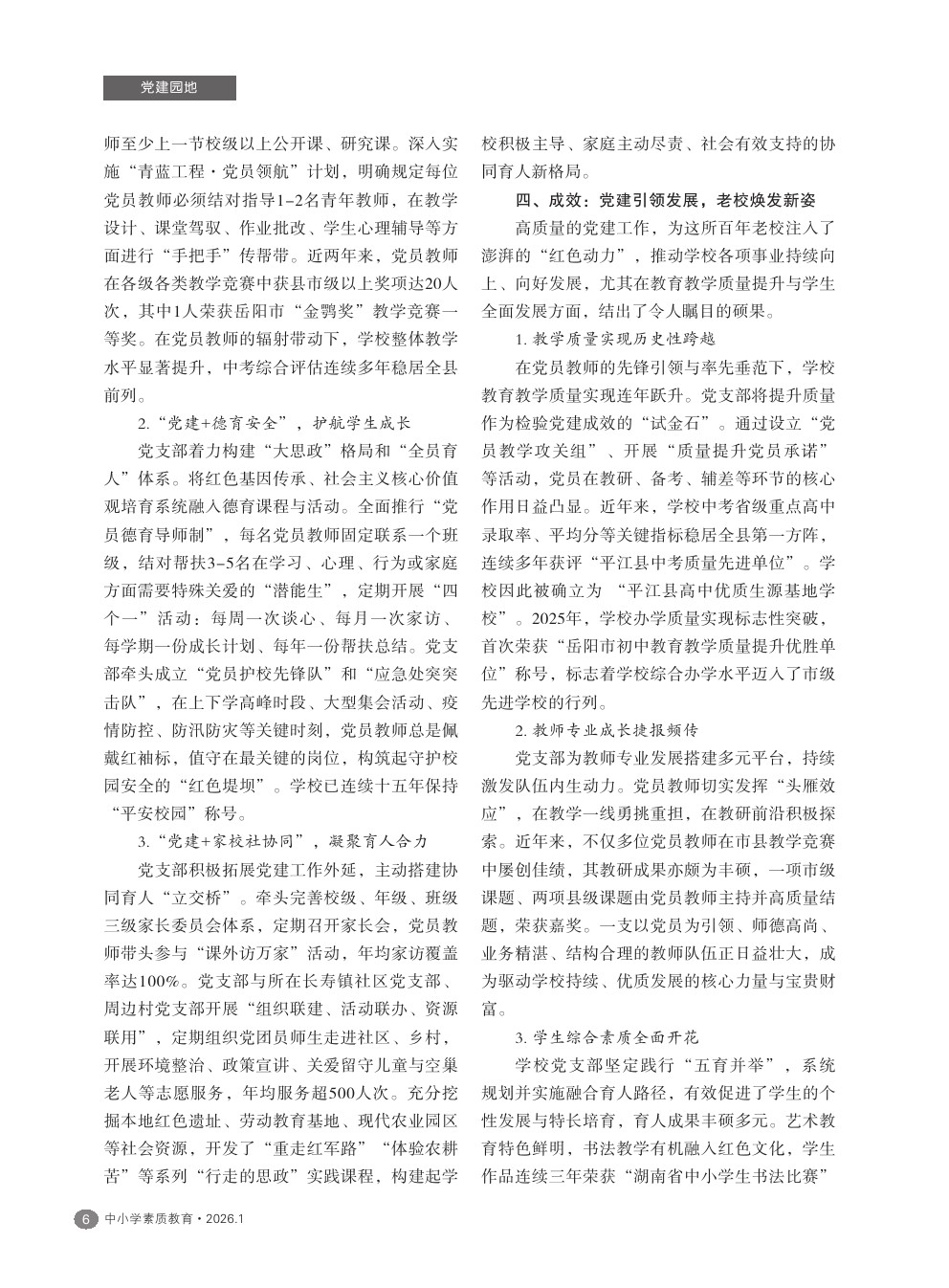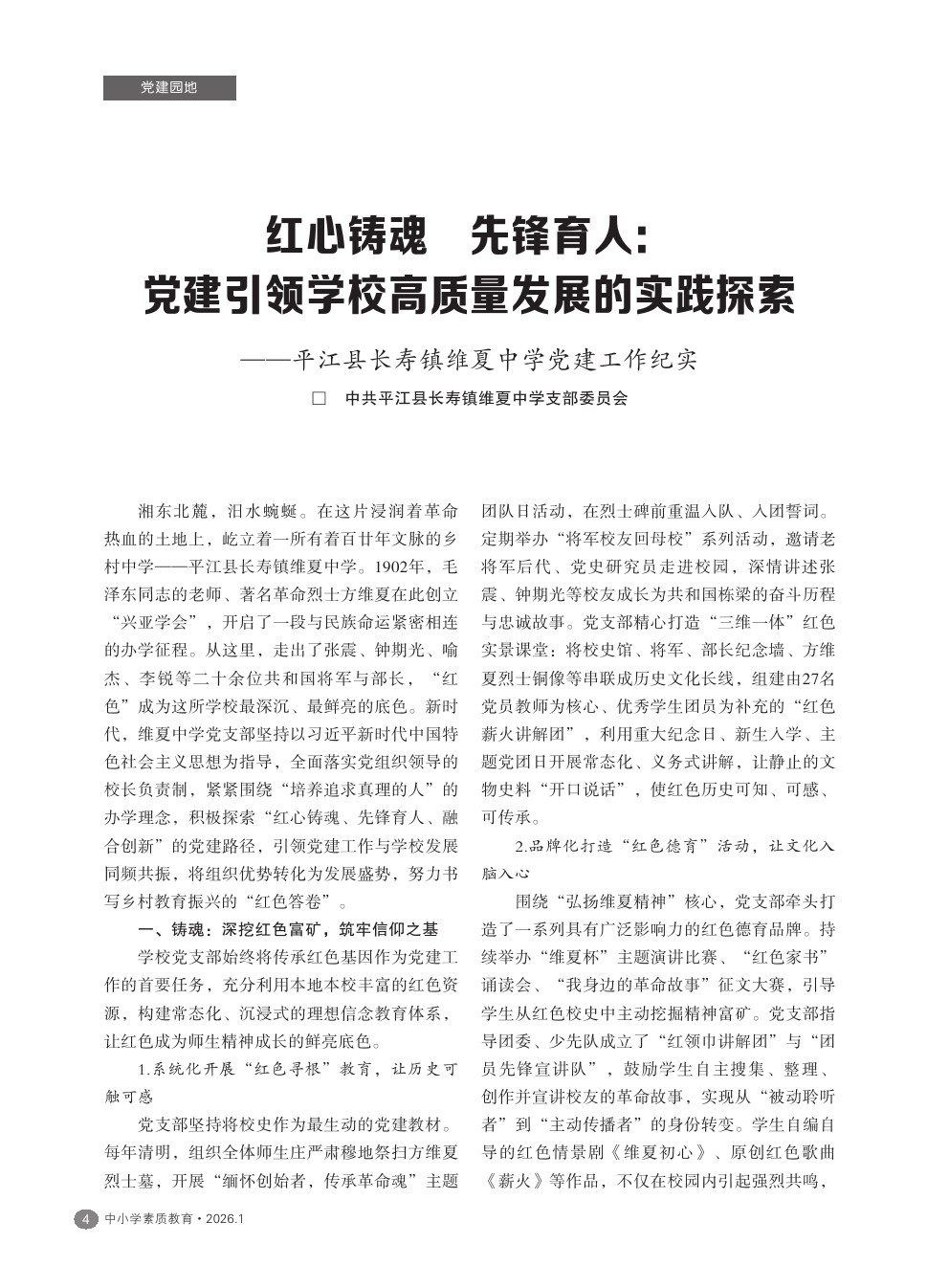 【2026年第1期】红心铸魂 先锋育人:党建引领学校高质量发展的实践探索——平江县长寿镇维夏中学党建工作纪实