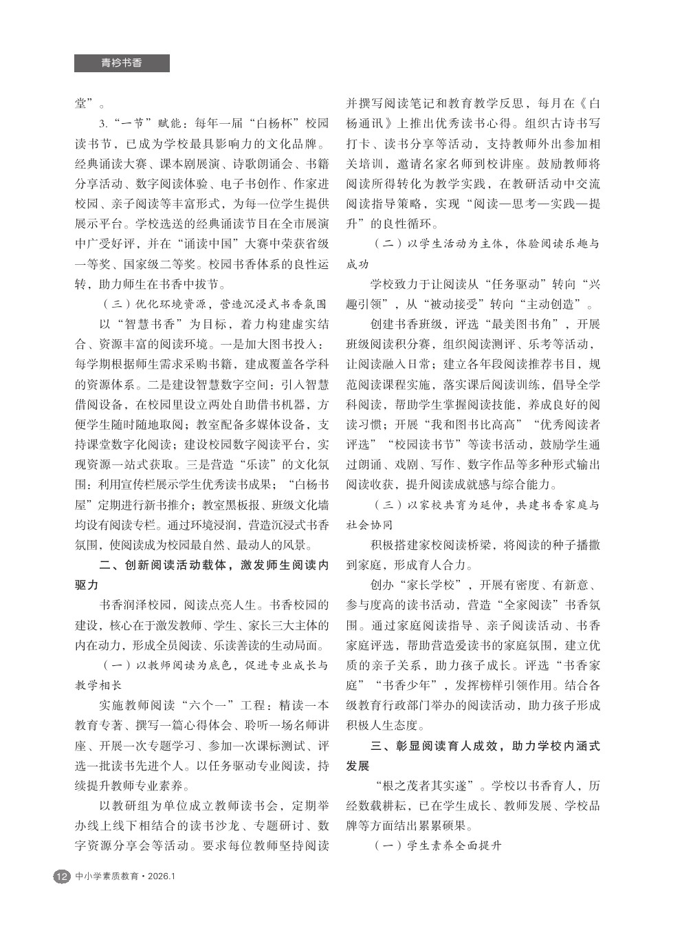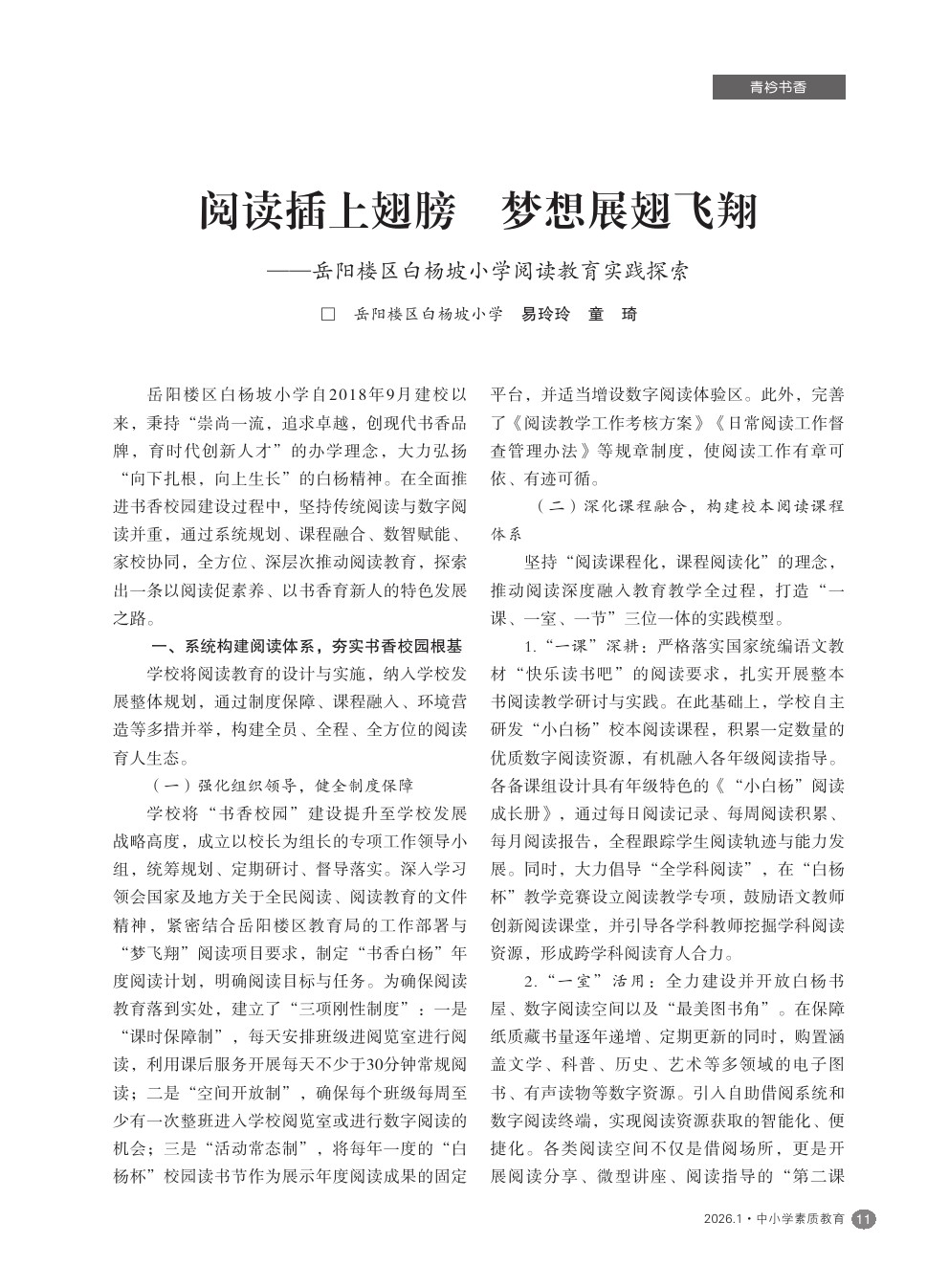 【2026年第1期】阅读插上翅膀 梦想展翅飞翔——岳阳楼区白杨坡小学阅读教育实践探索