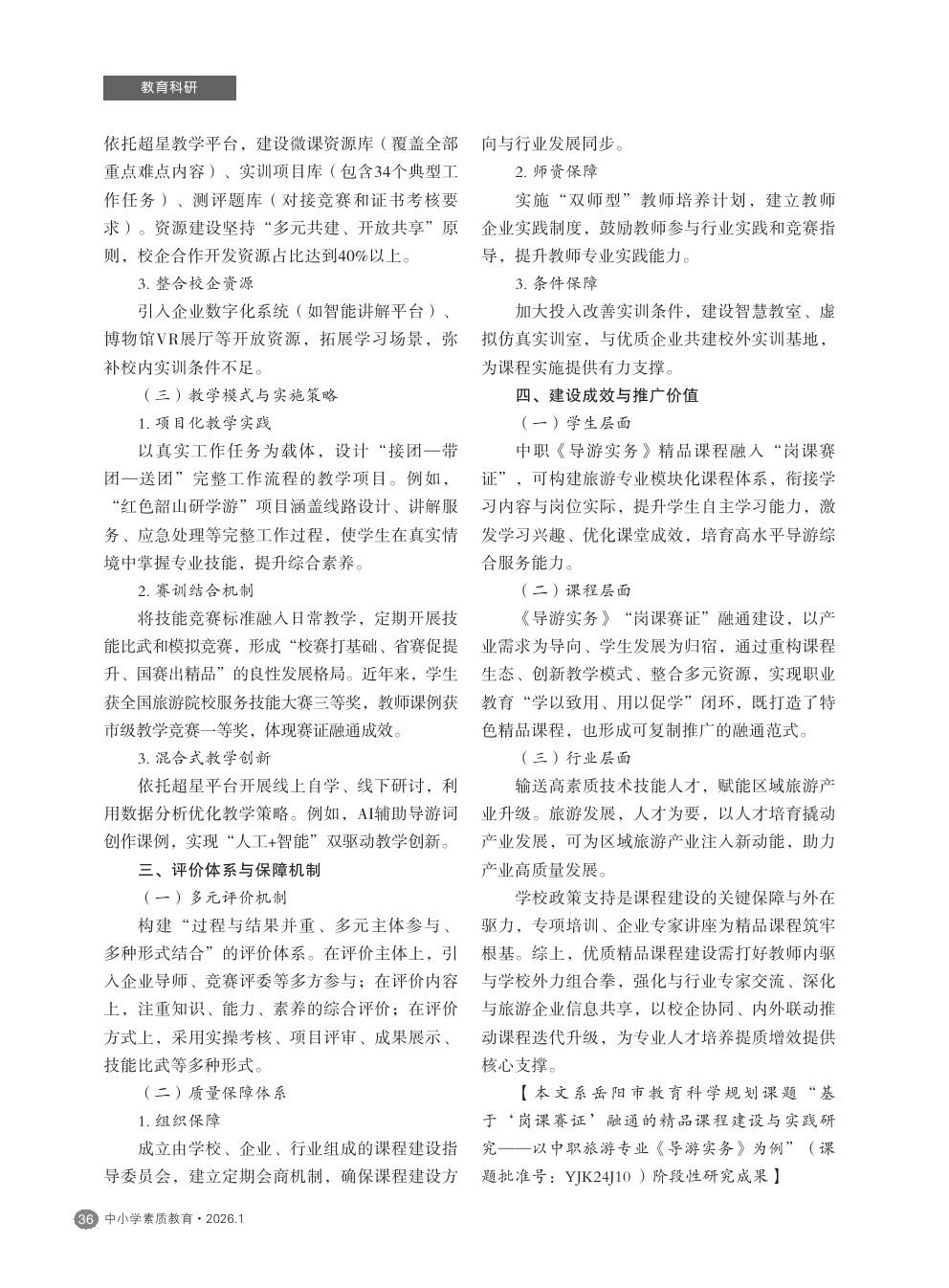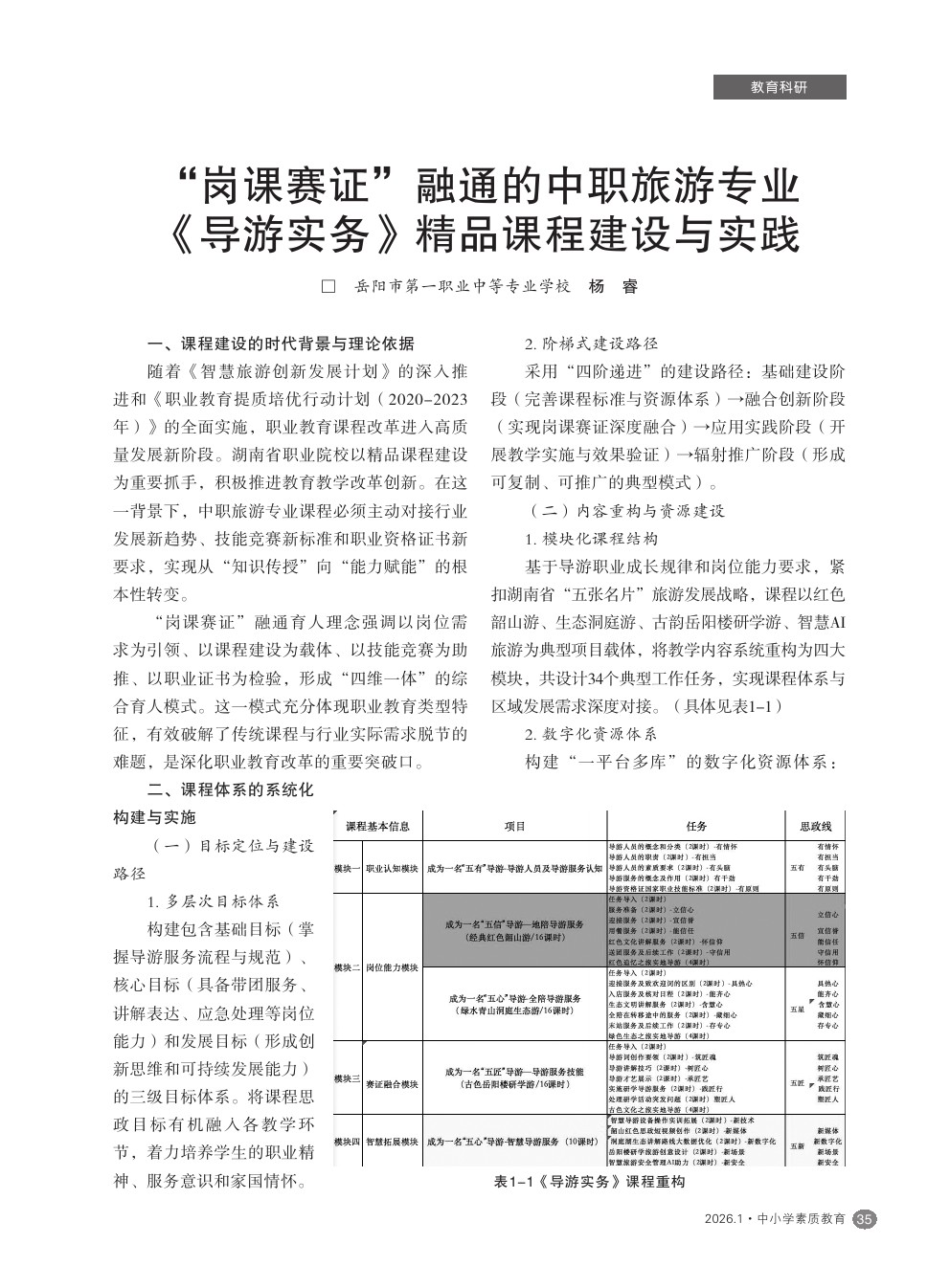 【2026年第1期】“岗课赛证”融通的中职旅游专业《导游实务》精品课程建设与实践