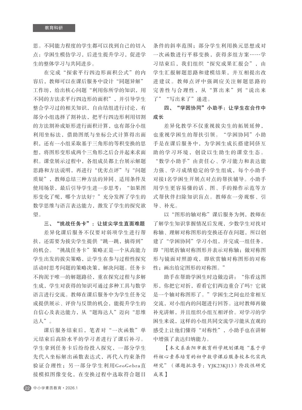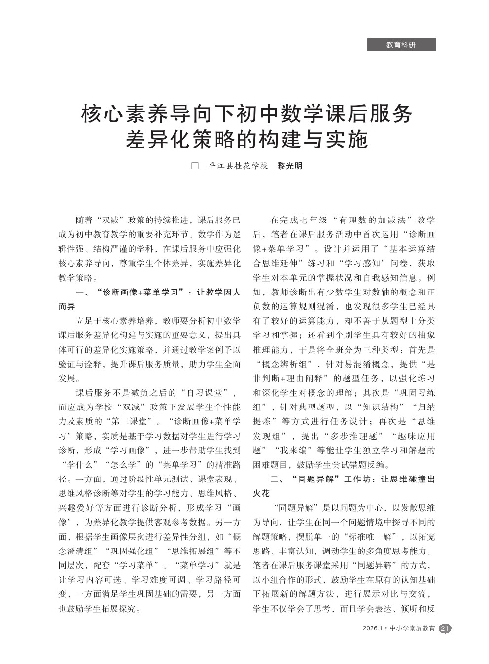 【2026年第1期】核心素养导向下初中数学课后服务差异化策略的构建与实施