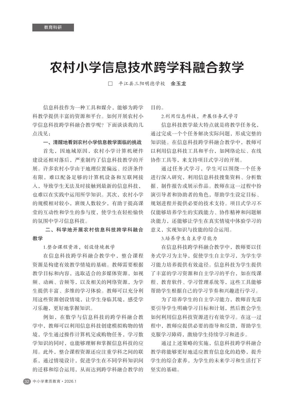 【2026年第1期】农村小学信息技术跨学科融合教学