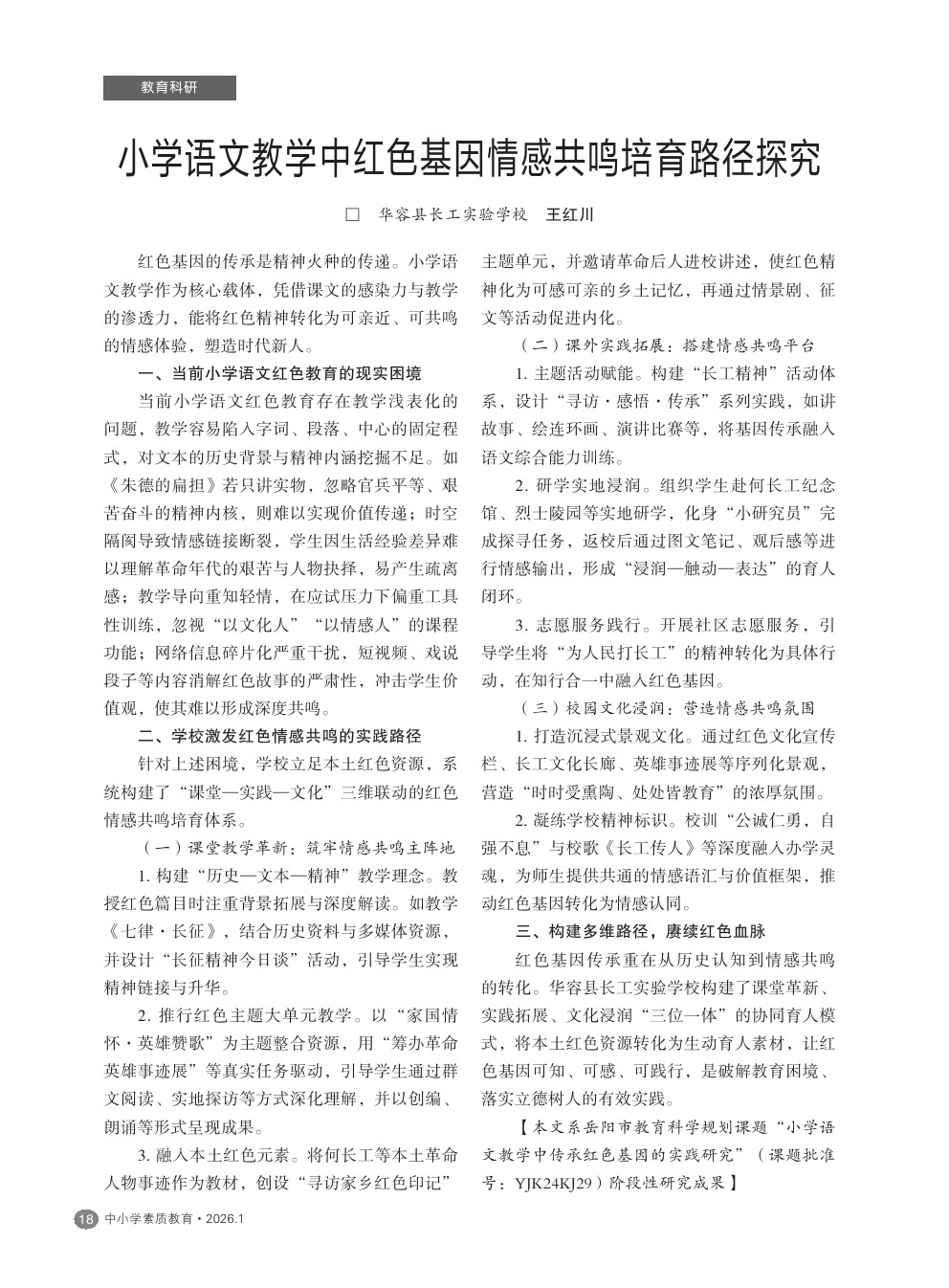 【2026年第1期】小学语文教学中红色基因情感共鸣培育路径探究