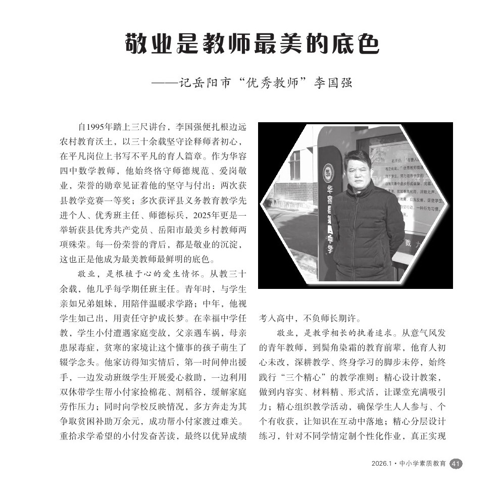 【2026年第1期】敬业是教师最美的底色——记岳阳市“优秀教师”李国强