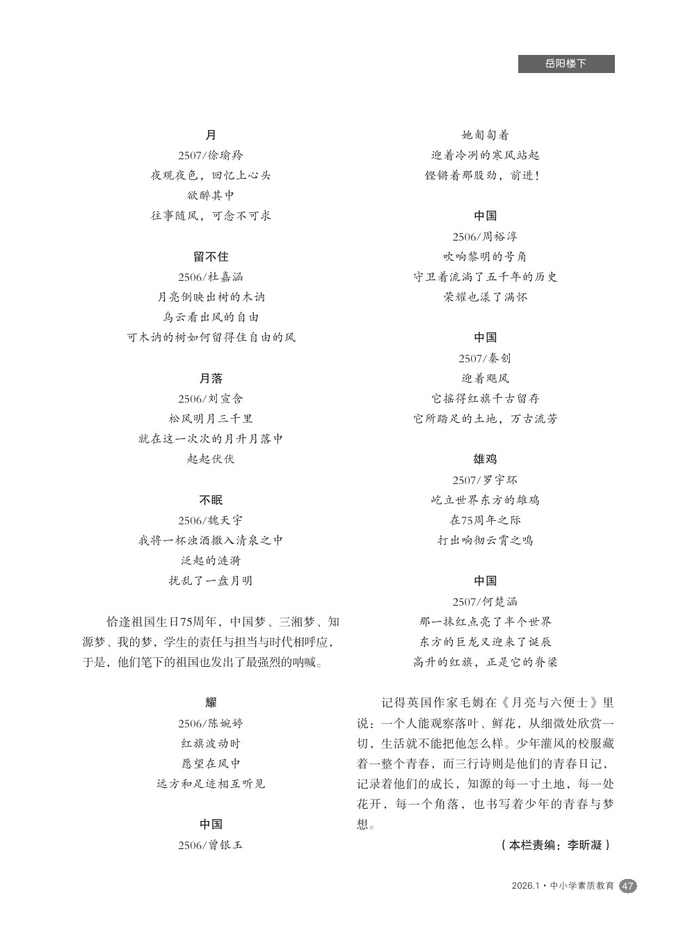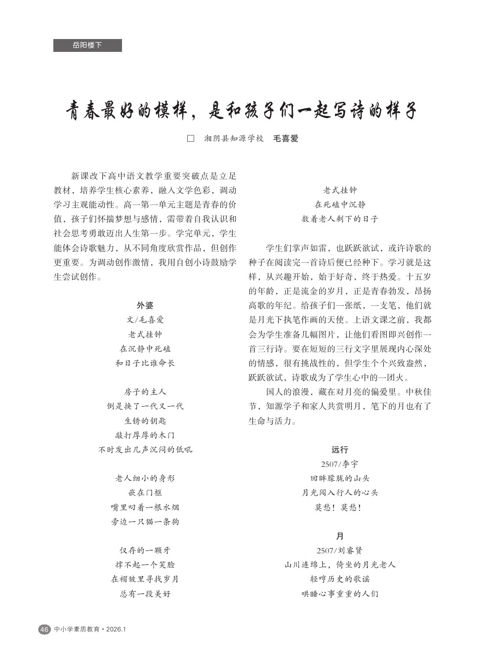 【2026年第1期】青春最好的模样,是和孩子们一起写诗的样子